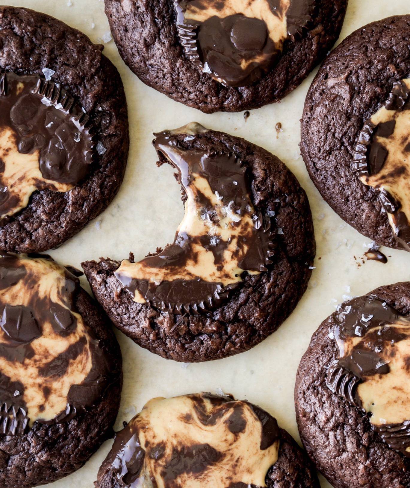 Happy Sunday Reader! Marshmallow + chocolate is another one of my favorite flavor combinations and these cookies deliver! Several years ago I started working on this cookie and I wasn't dazzled with how it was turning out and so I just dropped it. I picked it up recently, changed the cookie dough base and it worked PERFECTLY! This chocolate cookie dough bakes up gorgeous! Each piece of dough has 3 mini marshmallows nestled inside for the perfect gooey center. I tested this cookie dough...