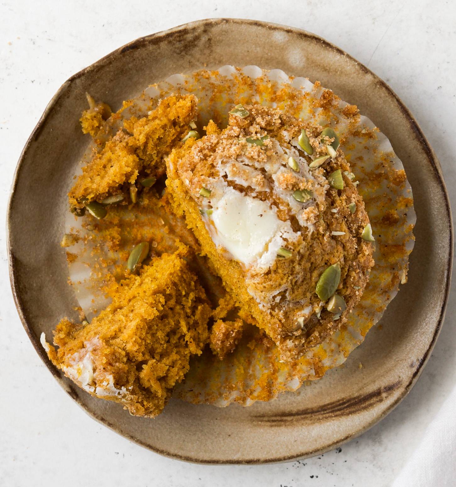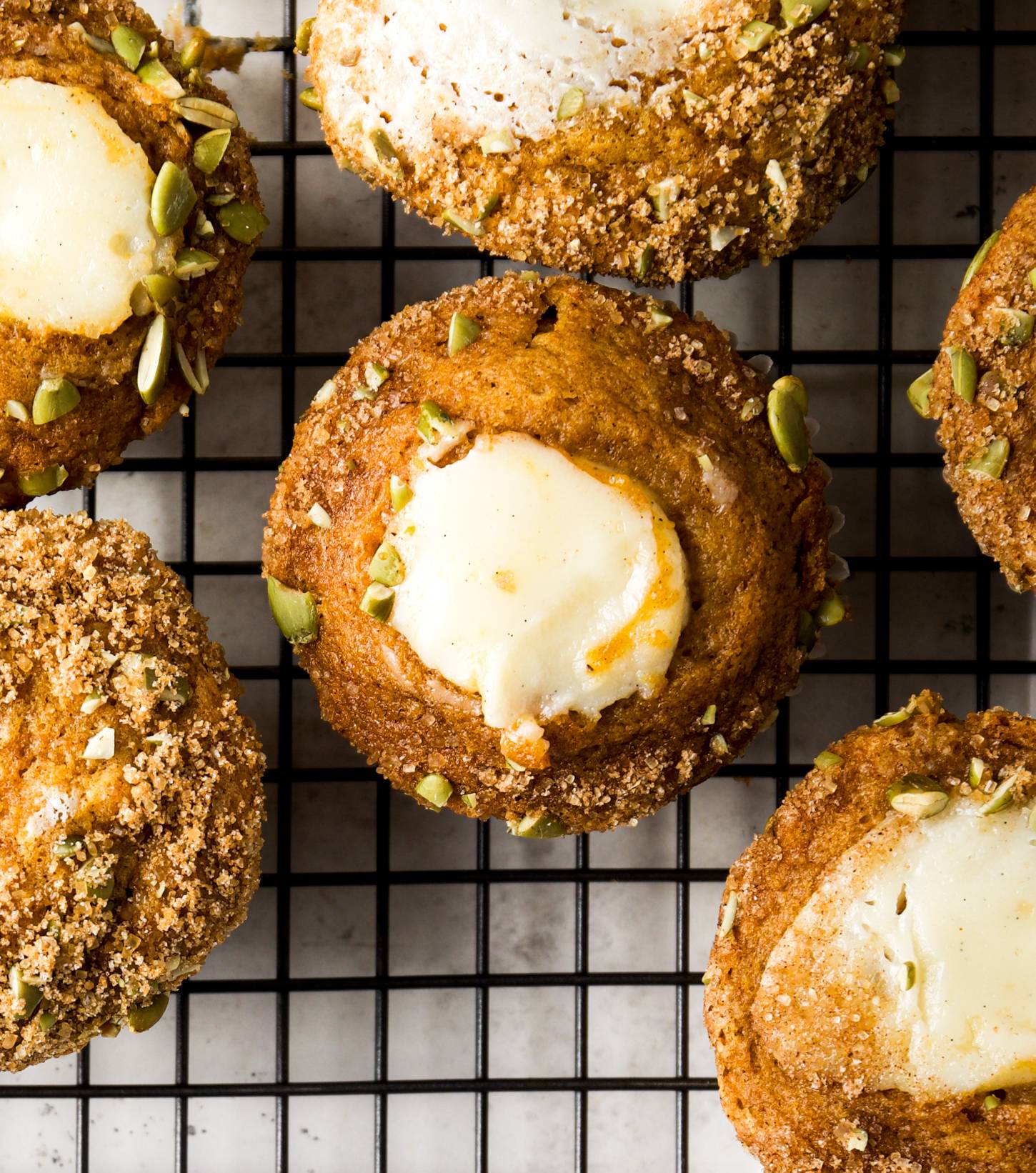 Happy weekend Reader! Cream Cheese Pumpkin Muffins FTW! Super moist, bouncy pumpkin muffin base that's loaded with the perfect cream cheese filling that stays soft, glossy and fabulous. The edges are coated in a brown sugar-spiced pumpkin seed topping that is perfection! Each part (the muffin base, cream cheese filling and crunchy topping) can be made the night before and stashed separately in the fridge for fresh muffins in the morning. Wishing you the best weekend!!