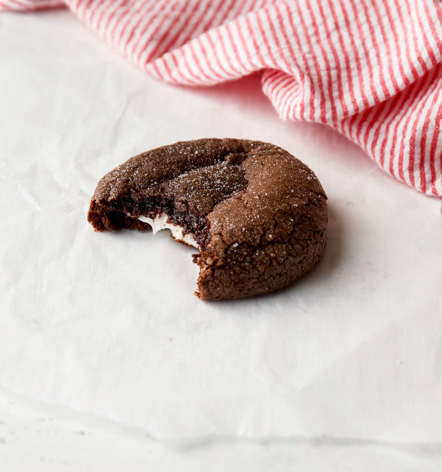 Happy Sunday Reader! Marshmallow + chocolate is another one of my favorite flavor combinations and these cookies deliver! Several years ago I started working on this cookie and I wasn't dazzled with how it was turning out and so I just dropped it. I picked it up recently, changed the cookie dough base and it worked PERFECTLY! This chocolate cookie dough bakes up gorgeous! Each piece of dough has 3 mini marshmallows nestled inside for the perfect gooey center. I tested this cookie dough...