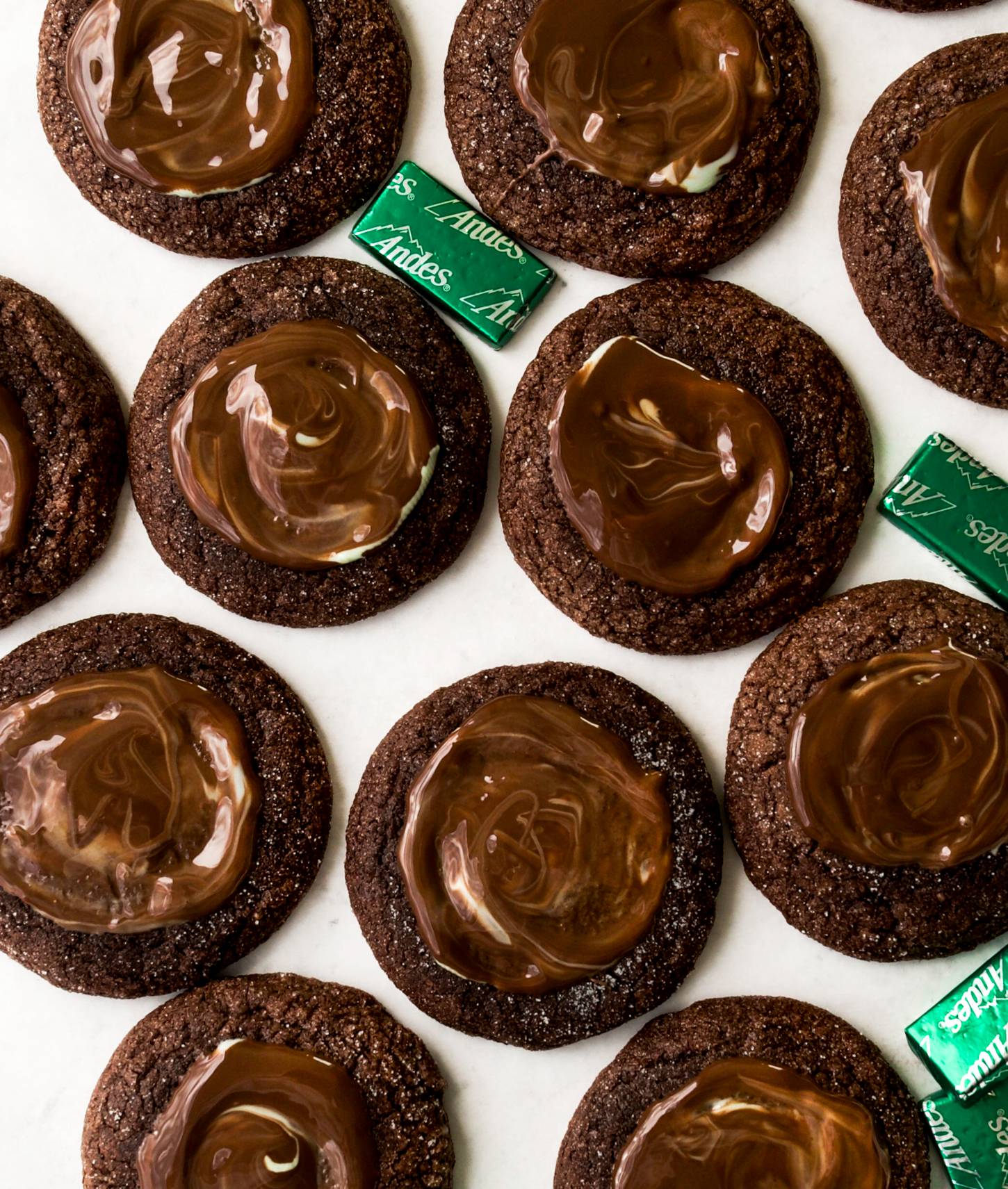 The result? The Andes chocolate leaves the top of the cookie slightly underbaked. Giving you a perfectly fudgy cookie that is chocolate mint cookie perfection.