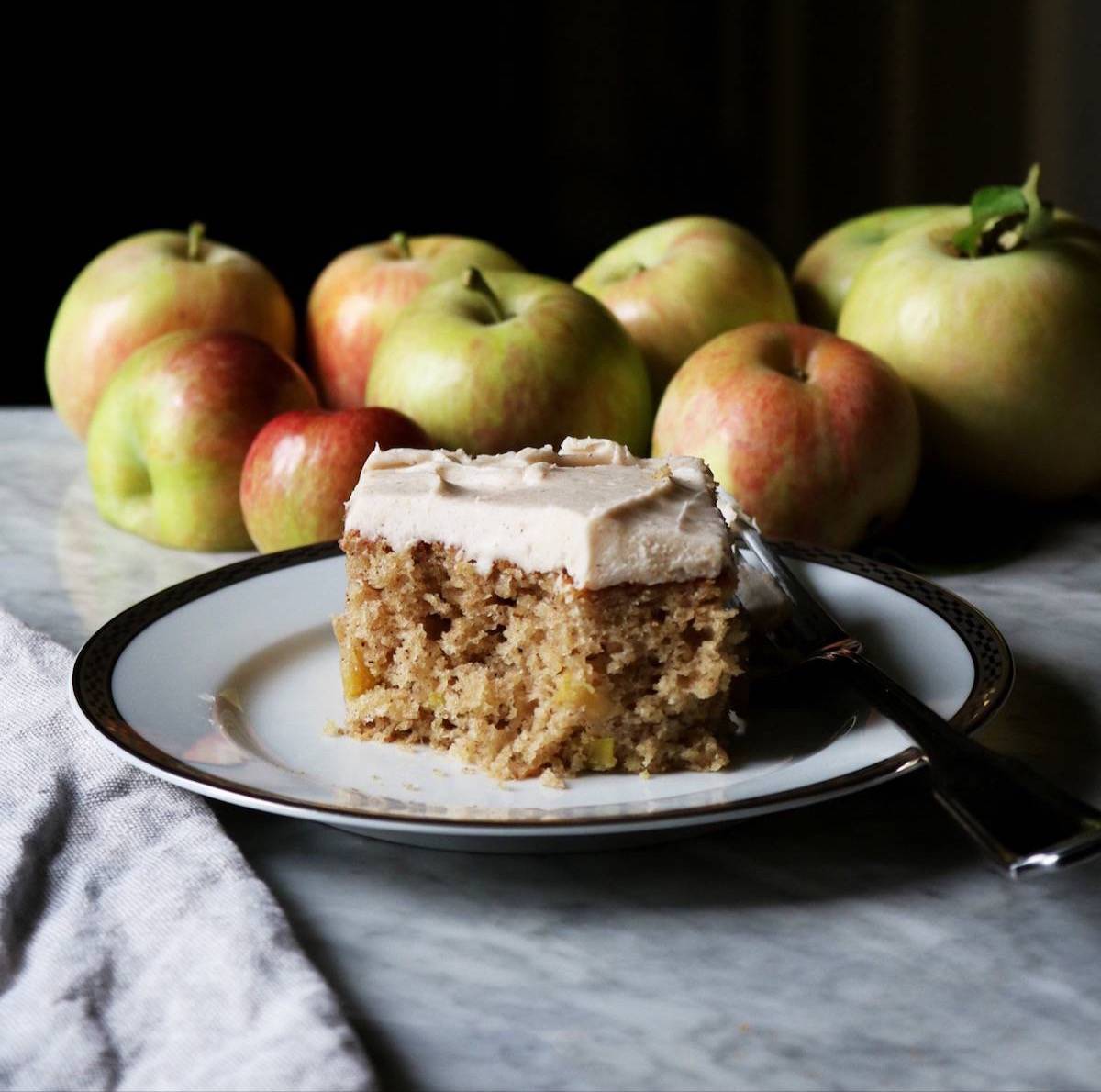 Soft, fluffy Spiced Apple Cake covered in a layer of easy-peasy Brown Butter Buttercream. One of my favorite apple snacking cakes that is as easy as it is delicious!