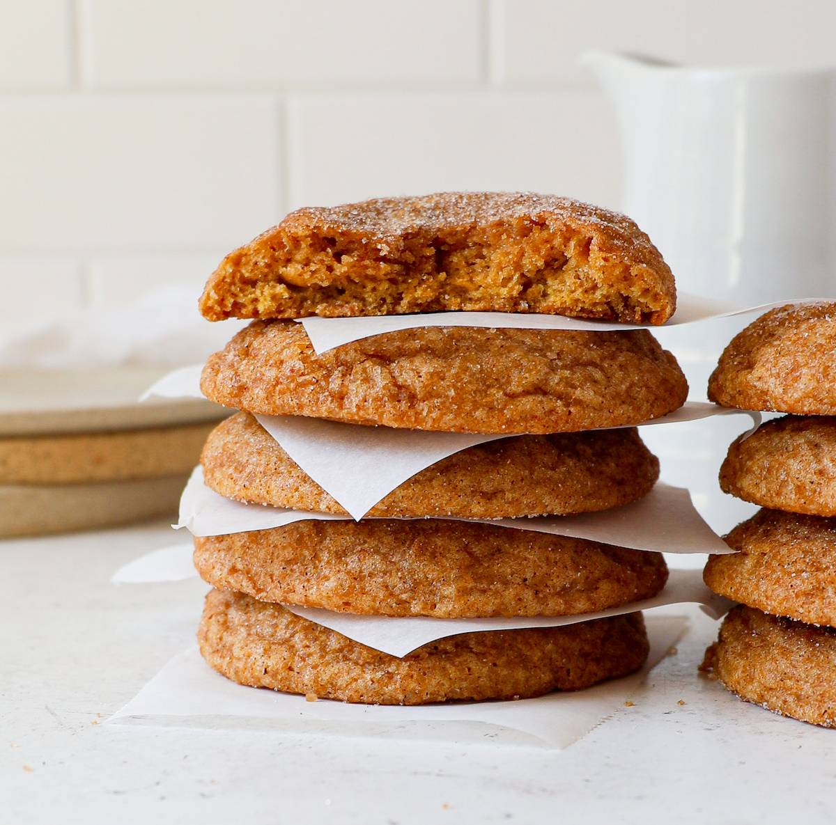 These bakery-style, super soft Brown Butter Pumpkin Snickerdoodles are everything you're looking for in a fall cookie! Loaded with lots of vanilla, brown butter, spices and pumpkin, these are a leveled-up version of a classic snickerdoodle cookie. The texture is super soft and gets some nice crunch from the Demerara sugar they're rolled in (this can be omitted if you don't have any on hand). Enjoy!