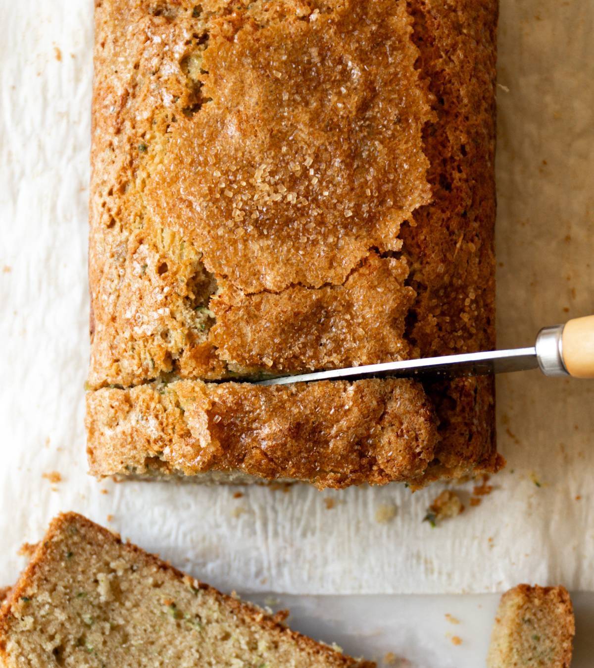 So excited for you to try this Ultra Moist Brown Butter Zucchini Bread Recipe! It's loaded with flavor from the brown butter, dark brown sugar and spices, with a soft, velvety and plush texture. Don't skip the Demerara on top!